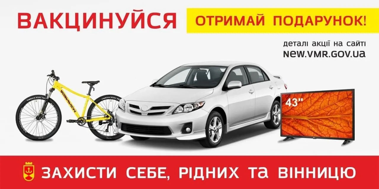 У деяких регіонах України вдаються до різного роду заохочень, щоб активізувати процес імунізації. Наприклад, у Вінниці міська влада вирішила розіграти серед вінничан, які отримали 2 дози щеплення, 50 велосипедів, 50 телевізорів та навіть автомобіль Toyota Corolla.