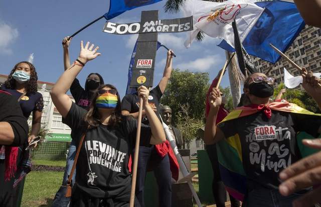 Демонстранти згадали Болсонару його висловлювання про користь гідроксихлорохіну під час боротьби з коронавірусом (ВООЗ зупинила випробування препарату) і вказують на низьке число вакцинованих.