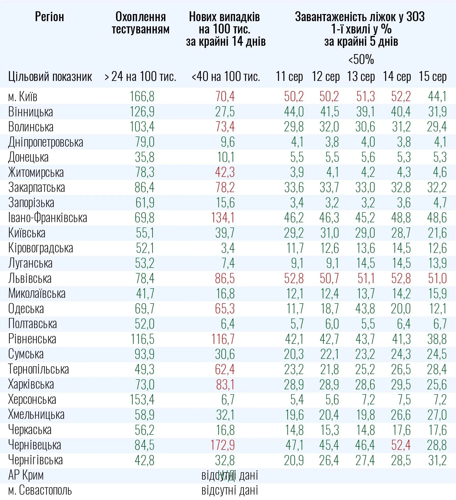 Станом на 16 серпня, згідно з показаннями МОЗ лише Львівська область не готова перейти до послаблення карантинних обмежень. Завантаженість ліжок у лікарнях регіону становить 51%.
