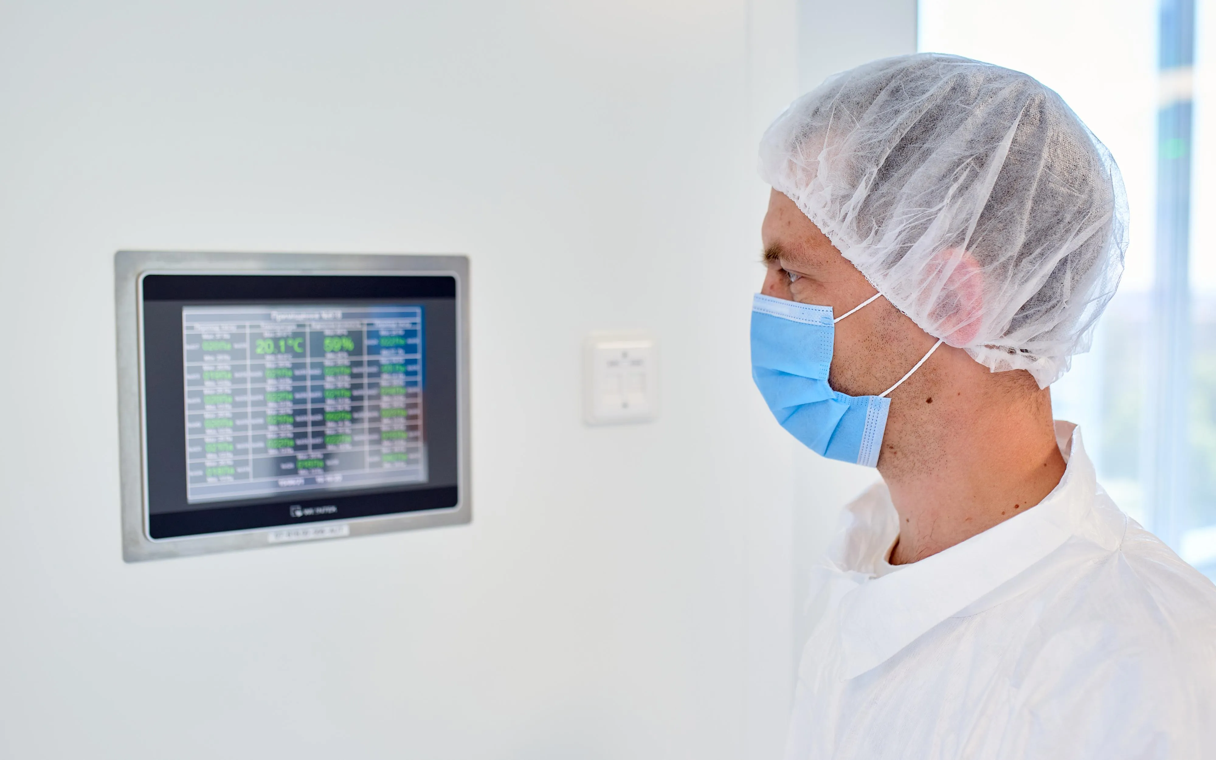 Оператор у чистому приміщенні класу C спостерігає за кліматичними параметрами повітря (тиском, вологістю, температурою) відповідно до всіх вимог GMP/Фото "Фармак"