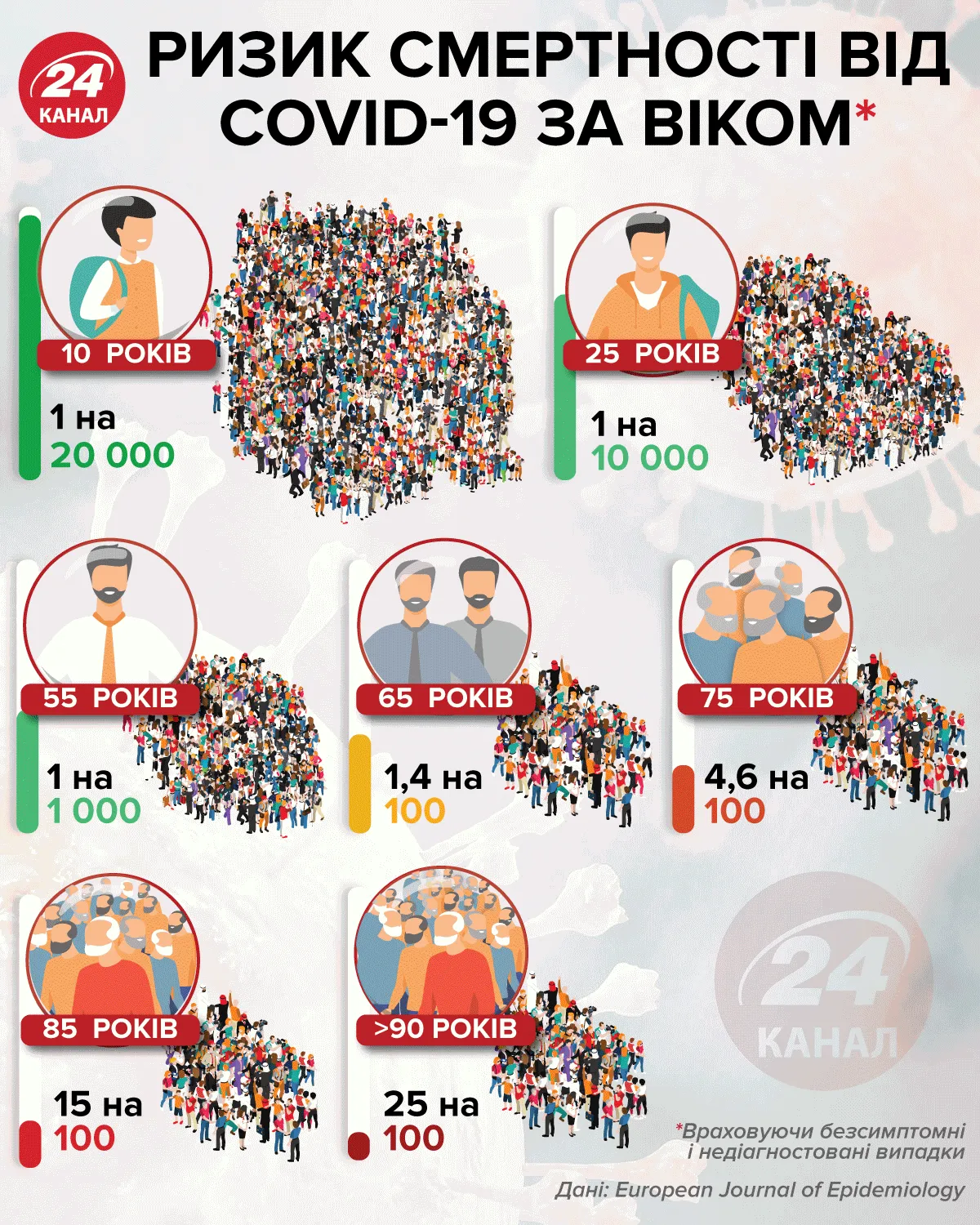Ризик смерті від коронавірусу / Джерело: European Journal of Epidemiology / Інфографіка 24 каналу