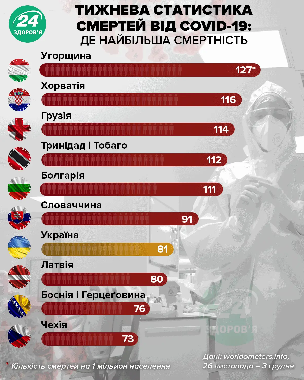 Смертность от коронавируса в мире на 1 миллион населения / Данные: Worldometers | Инфографика 24 канал