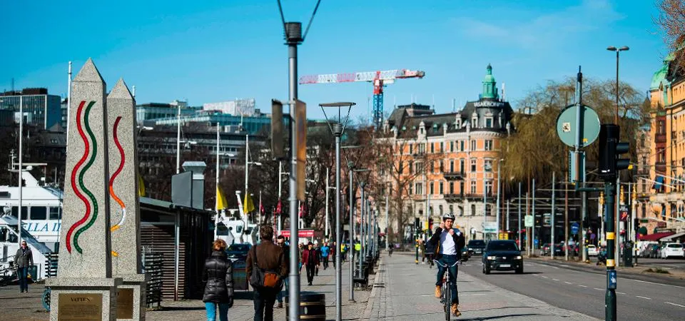 На переполненных улицах Стокгольма не заметить ни одного человека в медицинской маске или респираторе, хотя реклама на билбордах и экранах призывает быть осторожными.