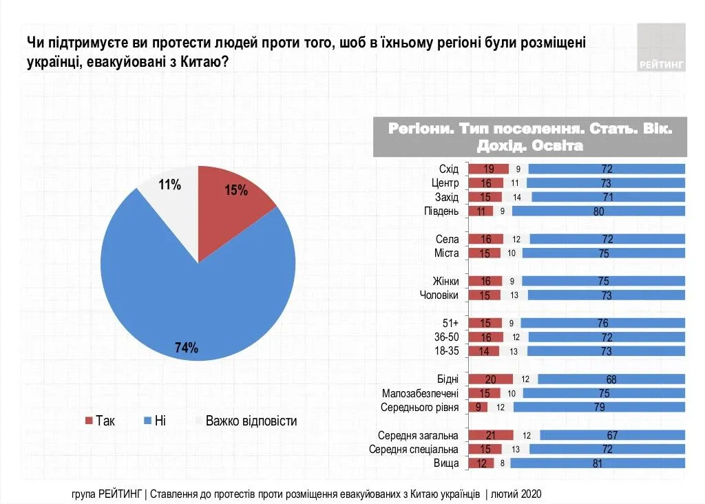 Ставлення до протестів проти розміщення евакуйованих з Китаю українців / Інфографіка групи "Рейтинг"