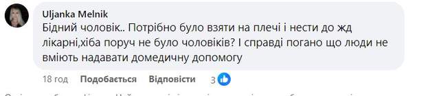 Також у коментарях під постом медзакладу користувачі пишуть, що якби на місці події були люди, які вміють надавати домедичну допомогу, це могло би зіграти вирішальну роль у порятунку чоловіка до приїзду швидкої.