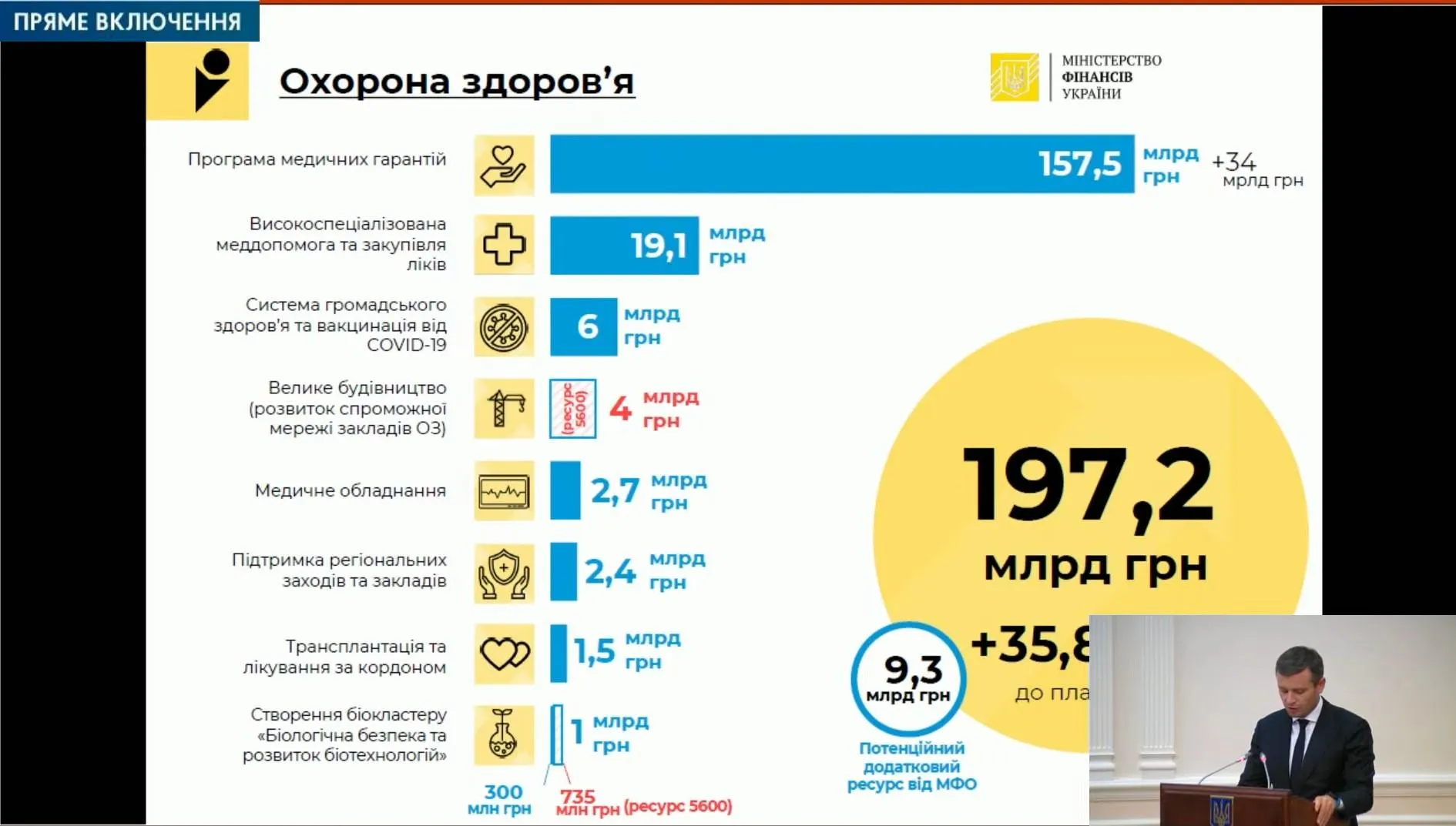 - 157,5 мільярдів підуть у Програму медичних гарантій НСЗУ.