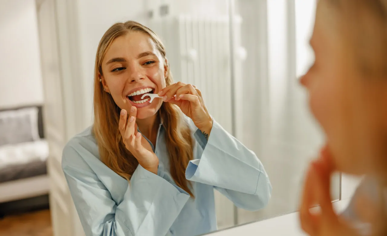 Тут допоможе лише зубна нитка (флос). Вона видаляє залишки їжі й бактеріальний наліт ще до того, як той перетвориться на камінь. За відсутності флоса цей наліт поступово твердне і стає зубним каменем, який вже не видалити самостійно – тільки у стоматолога.