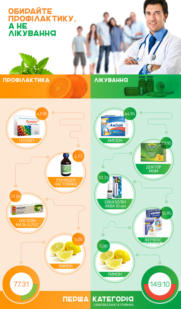 Не виконуючи найважливіші рекомендації щодо захисту власного організму від вірусів, ми, захворівши, одразу біжимо за ліками, не консультуємося з лікарем, самостійно призначаємо лікування, часто переплачуємо, довірившись обіцянкам реклами та назвам аптечних мереж, які декларують найнижчі, найоптовіші, найкращі ціни. А дешевше, як бачите, заздалегідь подбати про свій організм, його вітамінізацію і укріплення імунітету та віддавати перевагу аптекам, де вам наддадуть насправді кваліфіковану консультацію та запропонують всі можливі варіанти препаратів для швидкого одужання та економії бюджету.