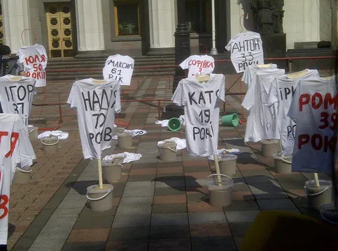 Боротися з халатністю лікарів Павло вийшов разом з активістами із пацієнтських організацій. За їхніми спинами – символічні "пам’ятники" жертвам непрофесійності медиків. На білих футболках імена тих, хто помер так і не дочекавшись лікування, або ж став жертвою лікарської помилки.
