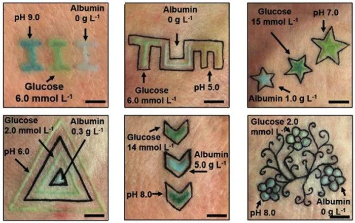 Татуювання показує зміни рівня глюкози, альбуміну і pH